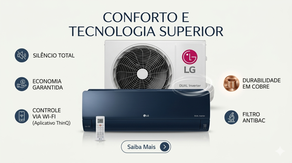 Ele resume o que há de melhor em tecnologia residencial hoje: inteligência, economia e silêncio. No fim das contas, o LG Dual Inverter 9000 é bom porque transforma o ambiente da sua casa, permitindo que você foque no que importa, enquanto ele cuida do clima de forma invisível.